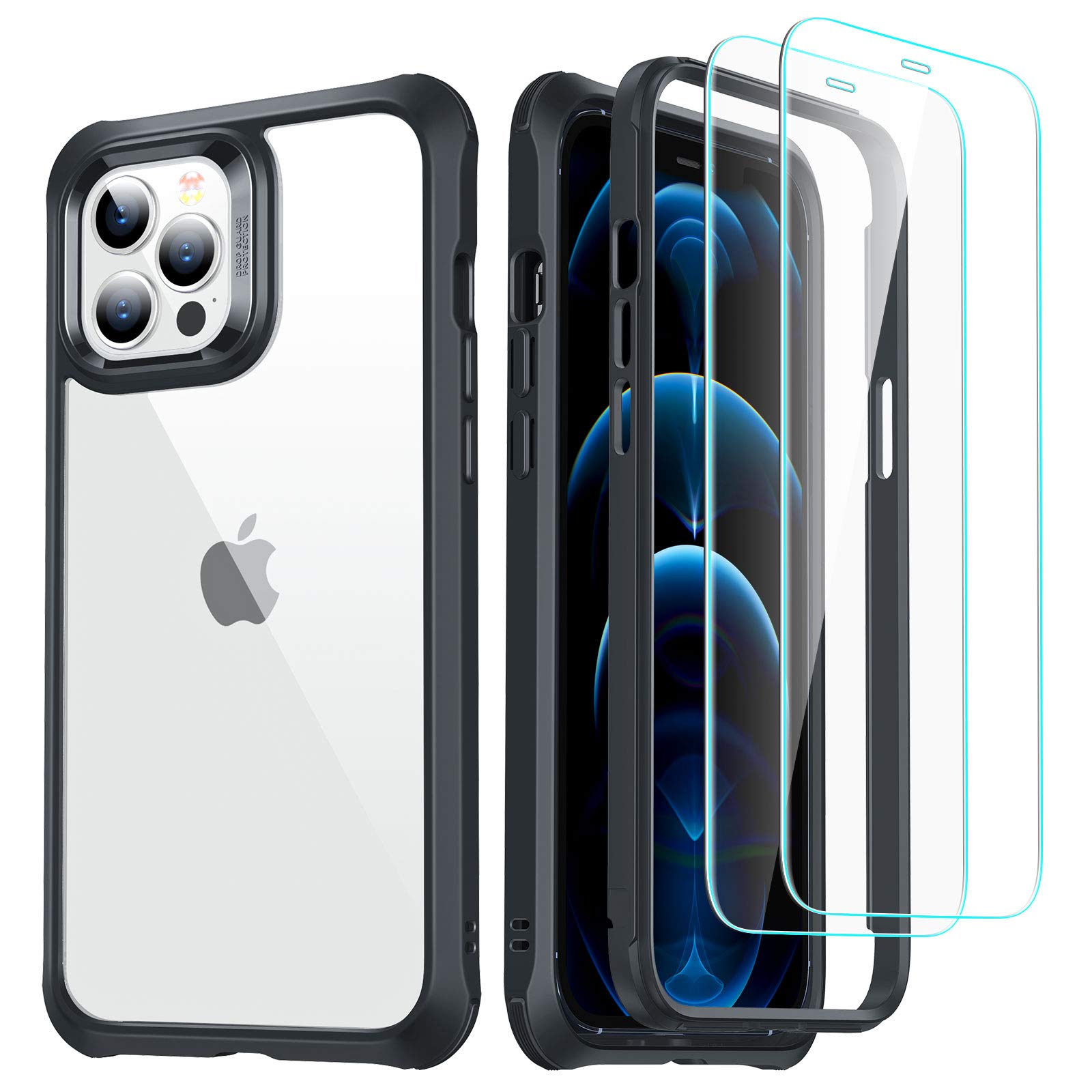 Amazon Com Esr Military Grade 360 Hybrid Full Body Protection Compatible With Iphone 12 Pro Max Case 10ft Drop Tested Heavy Duty Shockproof With 2 Tempered Glass Screen Protectors 6 7 Clear Black